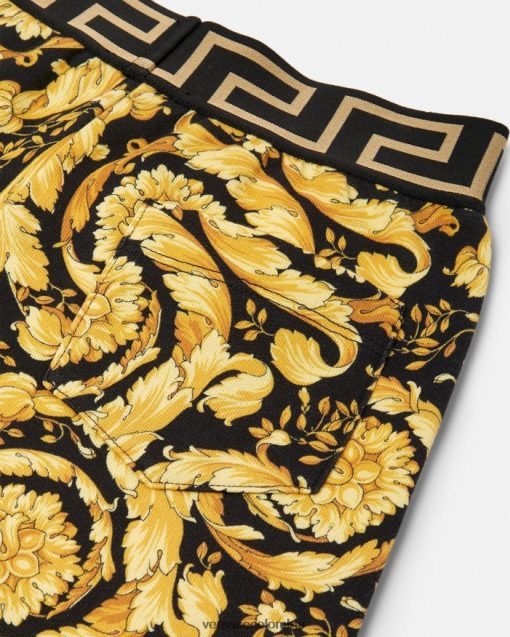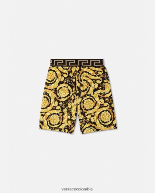 Estos pantalones cortos para niños, suaves y elásticos, presentan un estampado barroco infantil en toda su superficie y una cinturilla con motivo de Greca infantil.