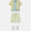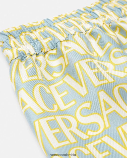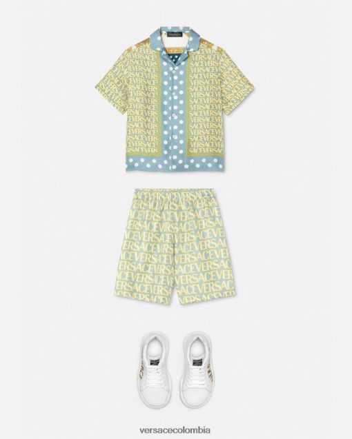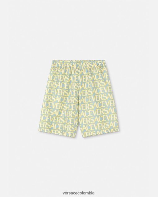 Estos pantalones cortos de sarga de seda presentan el estampado infantil de Versace con una cinturilla elástica.