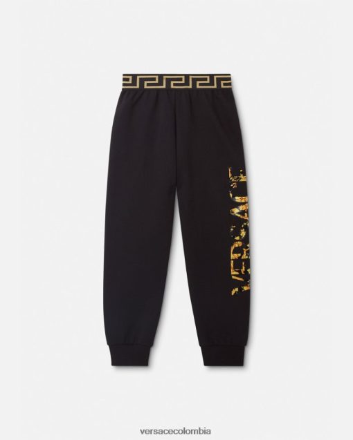 Confeccionados con punto de algodón, estos pantalones deportivos cuentan con un estampado barroco para niños con el logo de Versace en una pierna y la distintiva cinturilla con borde de Greca.