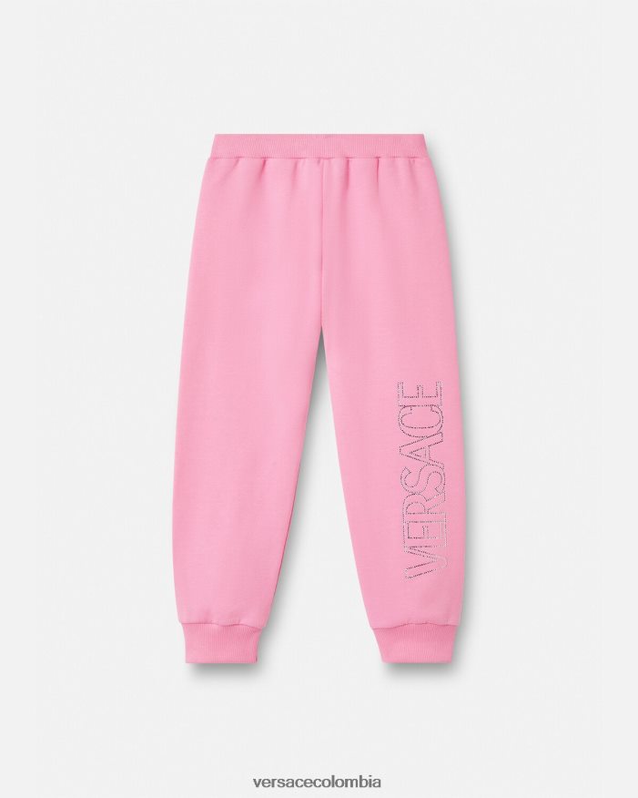 Pantalones deportivos para niños con el logotipo de Versace adornado con cristales en el lateral, perfectos para citas de juego activo.
