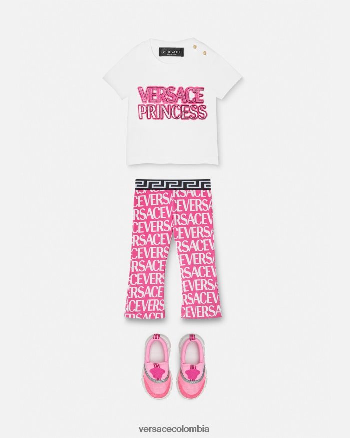 Confeccionados con punto de algodón, estos pantalones deportivos acampanados cuentan con un estampado del logo infantil de Versace en toda la prenda y una cinturilla elástica con el borde de greca.