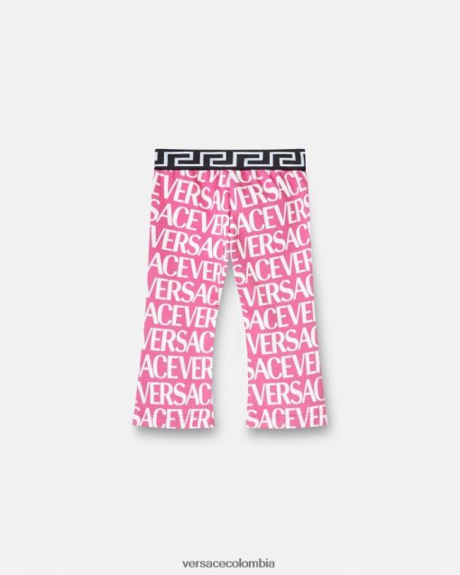Confeccionados con punto de algodón, estos pantalones deportivos acampanados cuentan con un estampado del logo infantil de Versace en toda la prenda y una cinturilla elástica con el borde de greca.