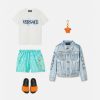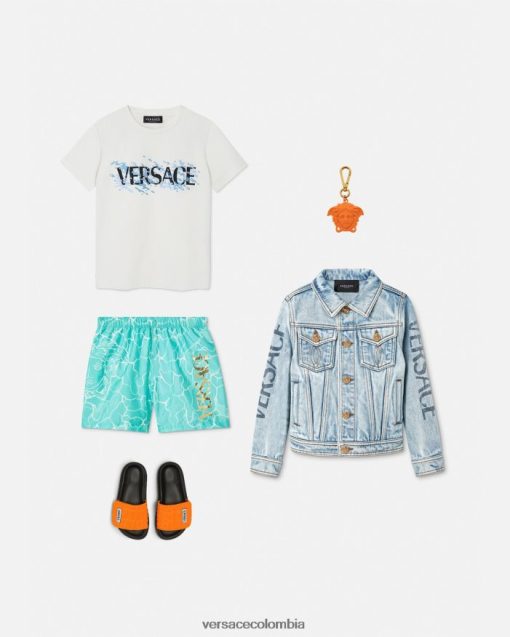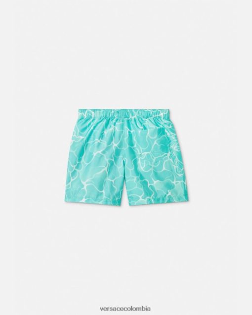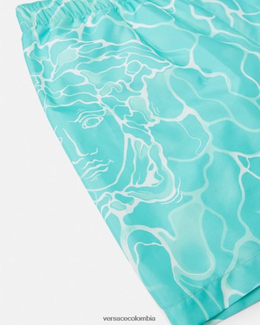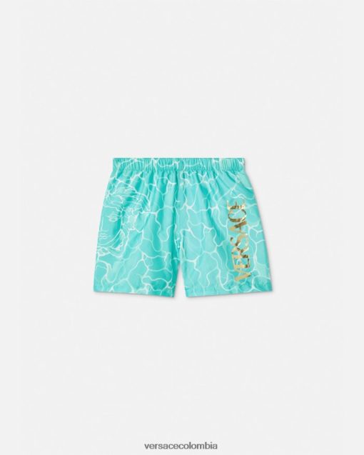 Estos shorts de baño presentan un motivo de medusa representado en un efecto submarino con un logo de Versace laminado en el lateral.