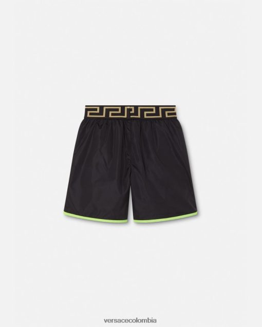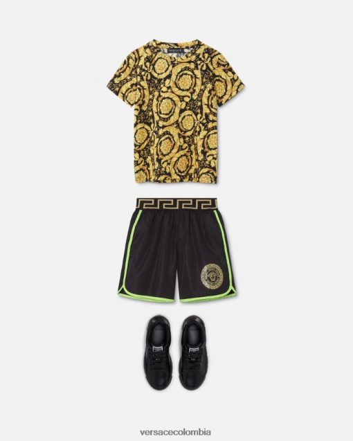 Perfectos para la playa o la piscina, estos shorts de baño cuentan con un motivo de Medusa Kids en lámina metálica y la cinturilla con borde de Greca Kids con ribetes de colores en contraste.