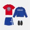 Listos para el patio de recreo, estos cómodos pantalones cortos están confeccionados con algodón suave y elástico. El modelo está adornado con detalles de logo y greca de color en contraste.