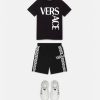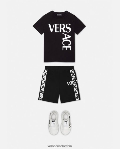 Listos para el patio de recreo, estos cómodos pantalones cortos están confeccionados con algodón suave y elástico. El modelo está adornado con una Greca de color en contraste y un logo decorativo en el lateral.