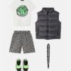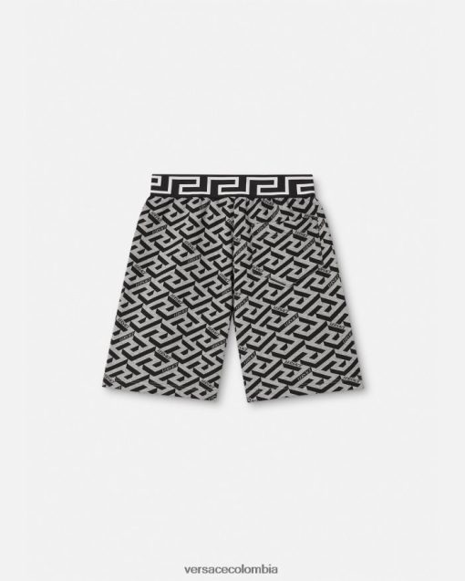 Pantalones cortos deportivos de punto con estampado de La Greca para niños en toda la prenda y un borde de Greca característico en la cintura.