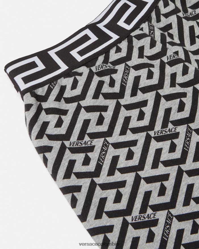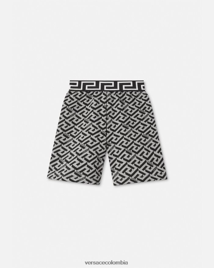 Pantalones cortos deportivos de punto con estampado de La Greca para niños en toda la prenda y un borde de Greca característico en la cintura.