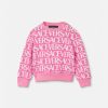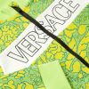 una sudadera de punto de algodón con cremallera que presenta un estampado mini-yo con siluetas estampadas del estampado barroco y un logo de versace kids en el frente.