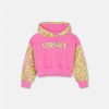 Esta sudadera con capucha está confeccionada con algodón suave y presenta una capucha y mangas con estampado barroco infantil. El diseño está acentuado por un motivo infantil con el logotipo de Versace en la parte delantera.