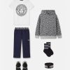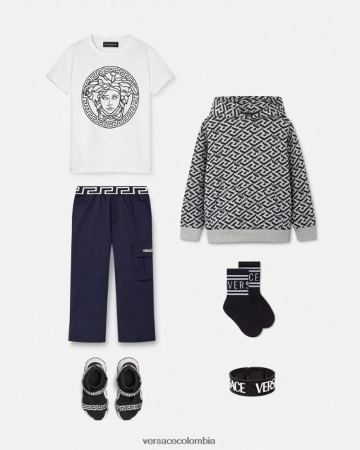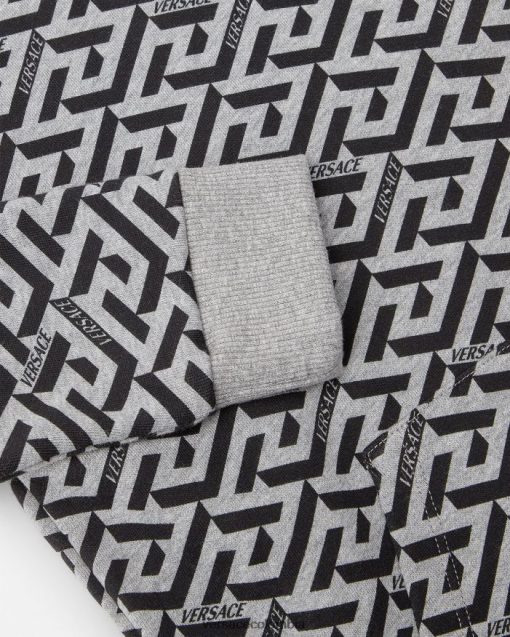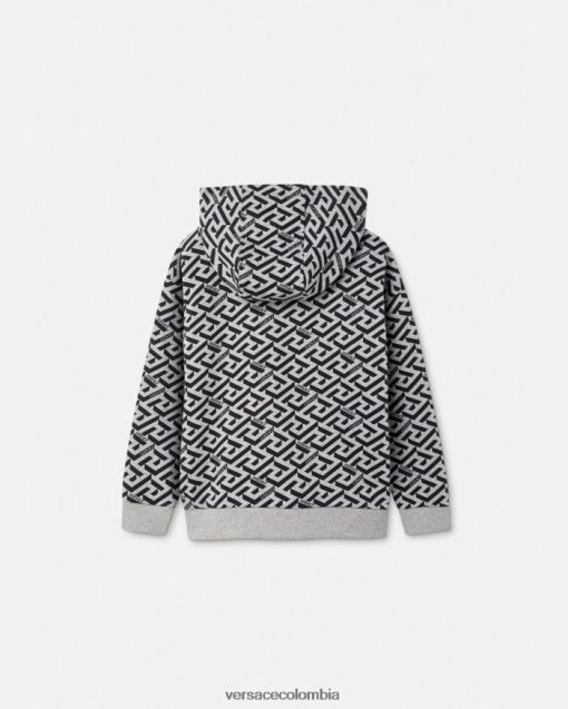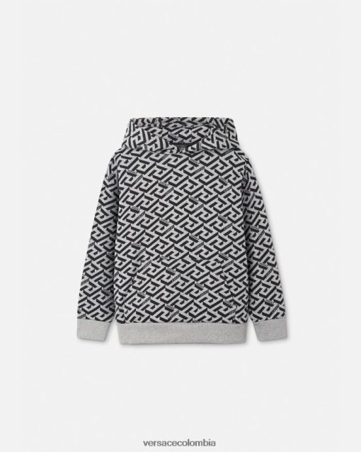 Esta sudadera con capucha de punto presenta un estampado infantil de La Greca en toda su extensión con ribetes acanalados.