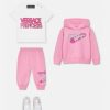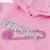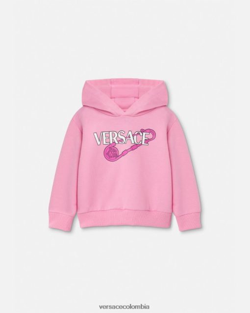 Confeccionada con punto de algodón, esta sudadera con capucha presenta un estampado infantil con imperdible y el logotipo de Versace en la parte delantera.