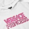 una cómoda sudadera con capucha perfecta para cada princesa de versace, con un logotipo de versace descolorido y un estampado de “princesa” en la parte delantera.
