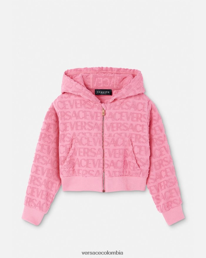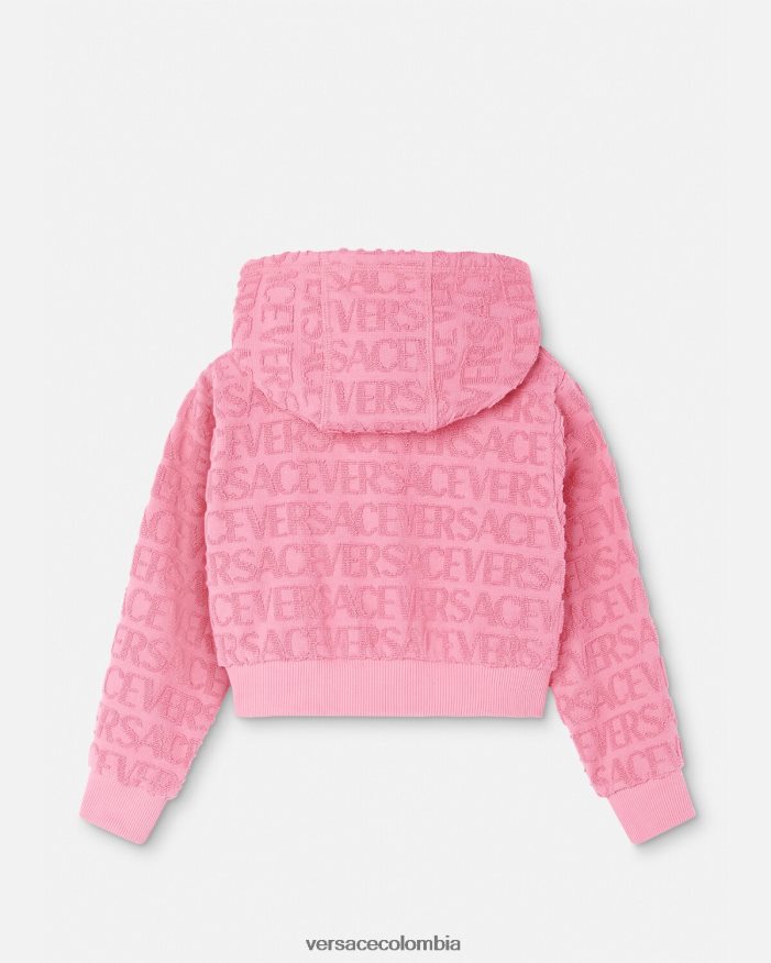 Esta versátil sudadera con capucha se puede utilizar para citas de juego y días de playa gracias a su tejido de toalla mini me con el estampado integral de Versace. El estilo con capucha no está forrado y está rematado con ribetes acanalados.