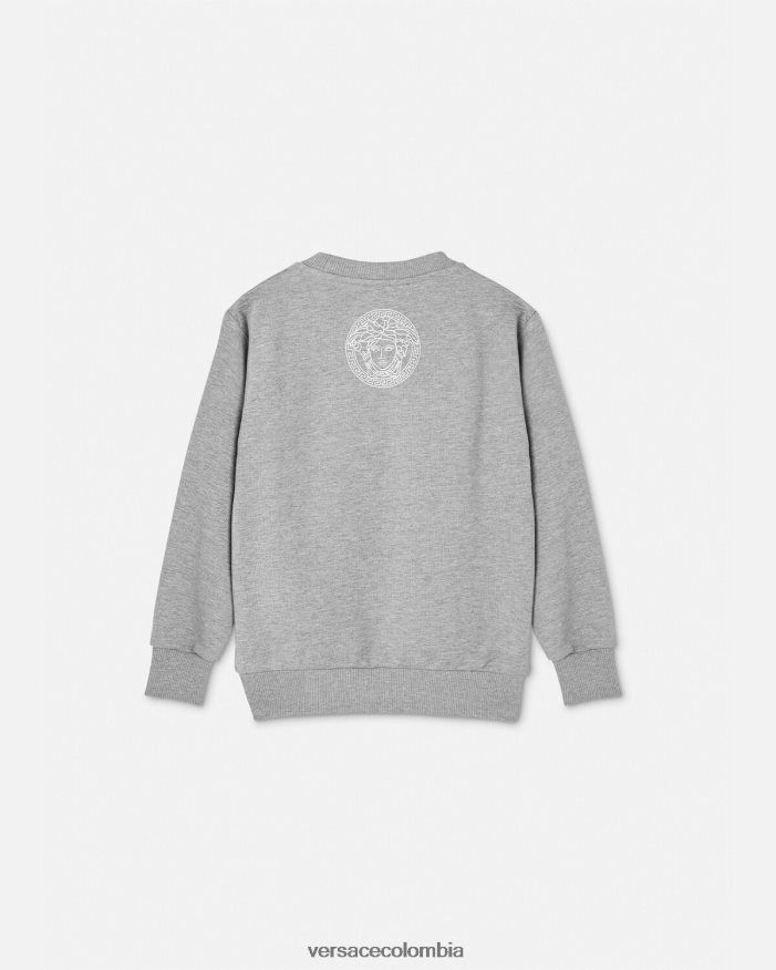 Una versátil sudadera de algodón de manga larga con un motivo infantil con el logo de Versace en el pecho y un motivo de Medusa en la espalda.