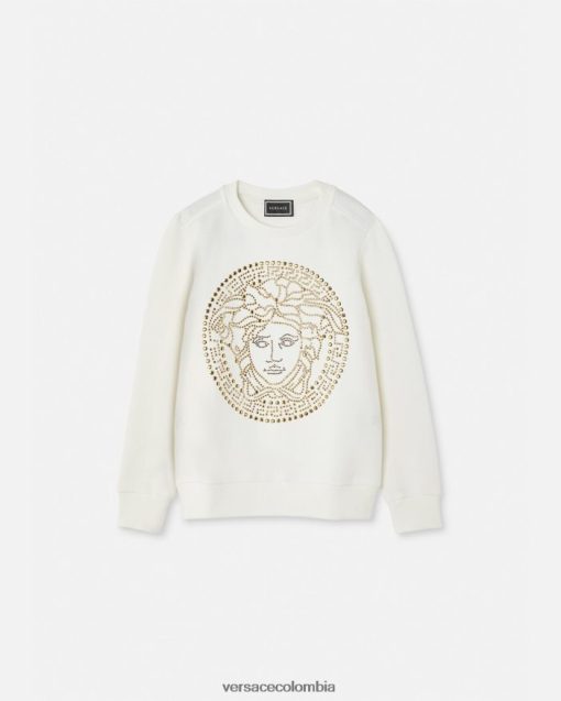 Confeccionada con algodón orgánico, esta sudadera de cuello redondo está adornada con una medusa con tachuelas en tono dorado. el estilo presenta tejidos de canalé.