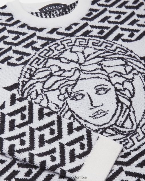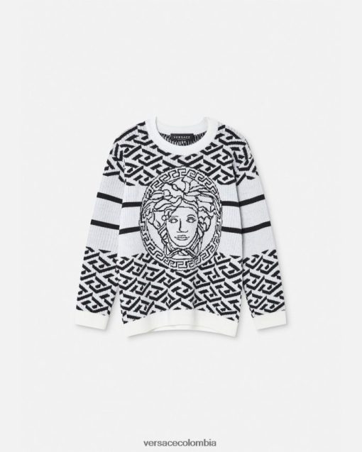Confeccionado en lana, este suéter de punto está listo para jugar para los más pequeños. Este estilo cómodo presenta el motivo de Medusa sobre el estampado infantil característico de La Greca.