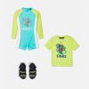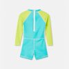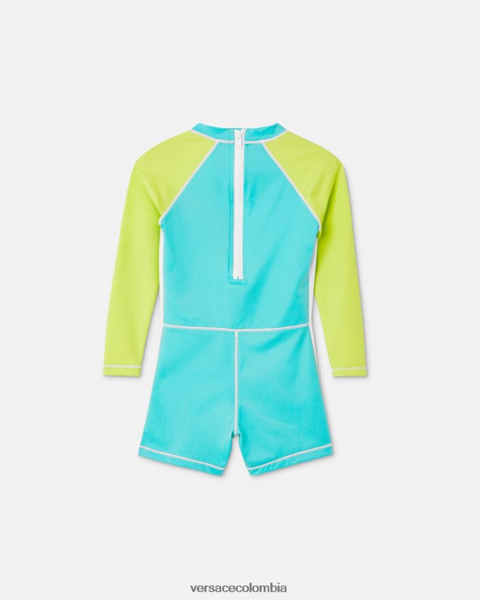 un traje de neopreno de manga larga para proteger a los más pequeños en los días soleados en la piscina o la playa, que presenta las gafas de sol medusa para niños con estampado de personajes de vida marina inspirados en los cómics.