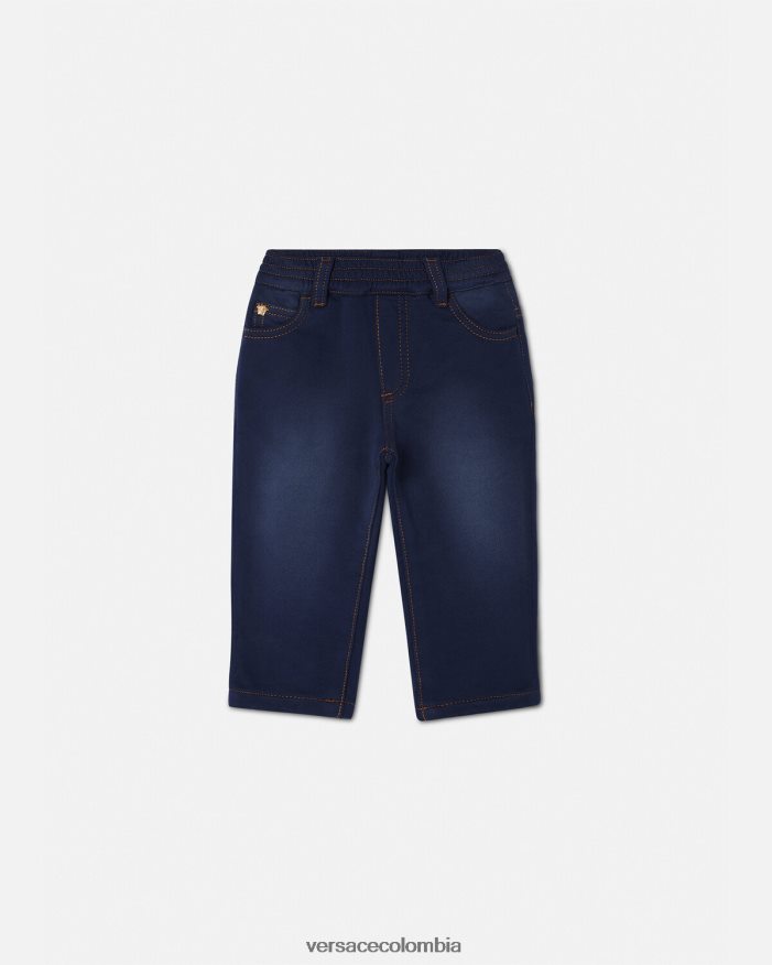 Con una cómoda banda elástica, estos jeans cuentan con una tachuela de Medusa que adorna el bolsillo delantero.