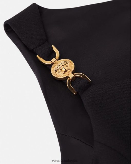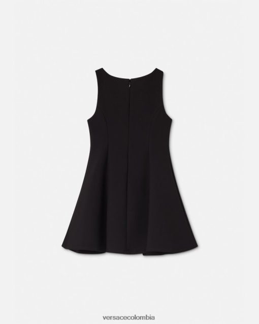 este vestido sin mangas tiene una silueta acampanada y recta y está realzado por botones decorativos de medusa multicolores