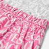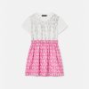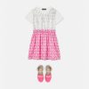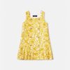un vestido estilo camiseta con falda estampada de popelina de algodón de Versace Kids y un top de punto de manga corta con adornos de cristal.