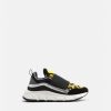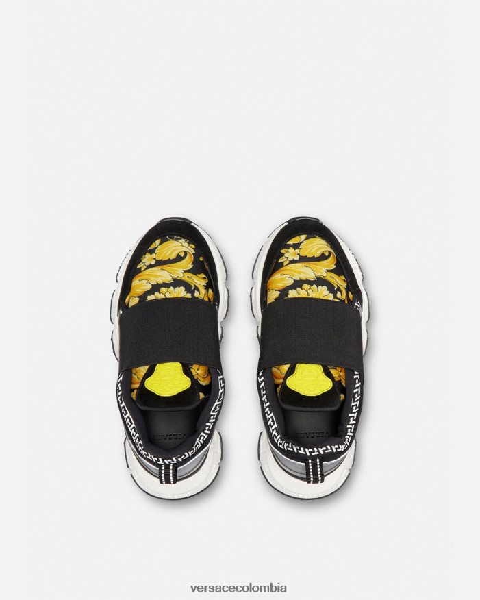 Una mini interpretación de las zapatillas Trigreca de Versace, este estilo sin cordones presenta inserciones con estampado barroco infantil, una placa de goma con Medusa y un cómodo “sistema de amortiguación Greca”, ideal para los días de juego activo.